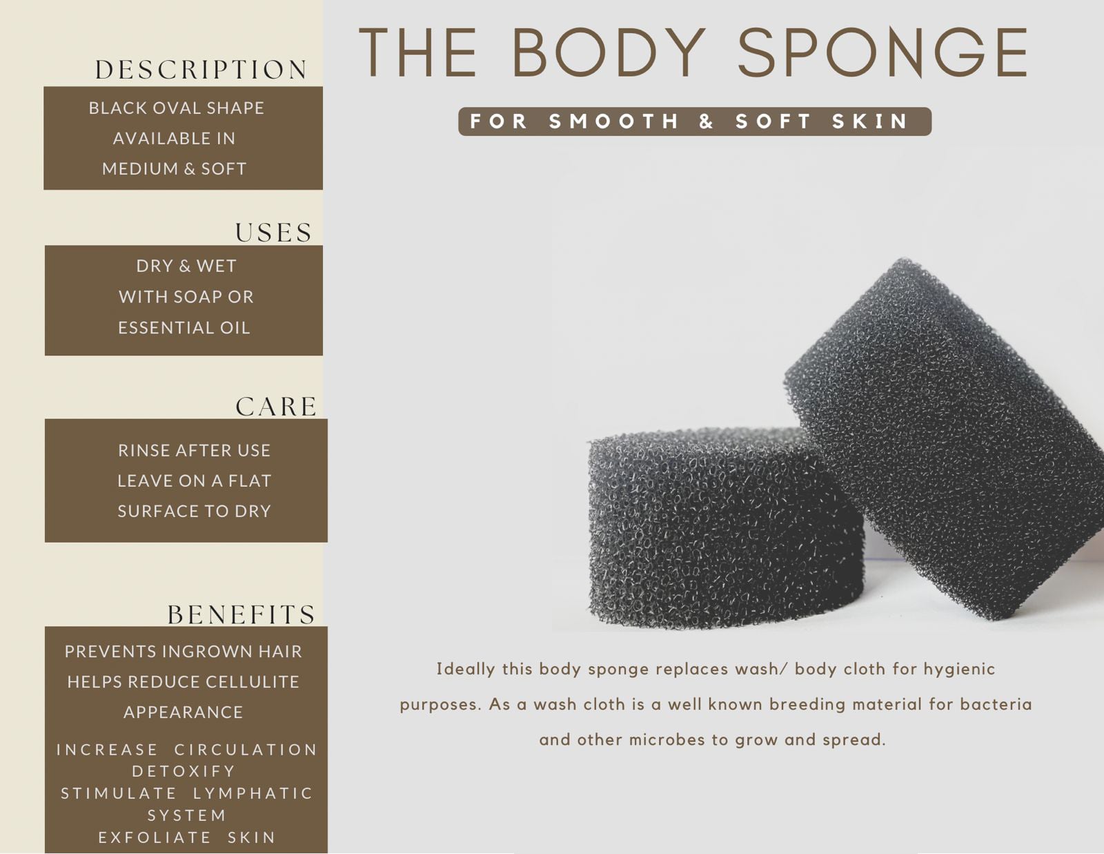Note: This is quite an aggressive sponge that offers deep exfoliation. It is recommended to very gently rub the skin to avoid redness or irritation.