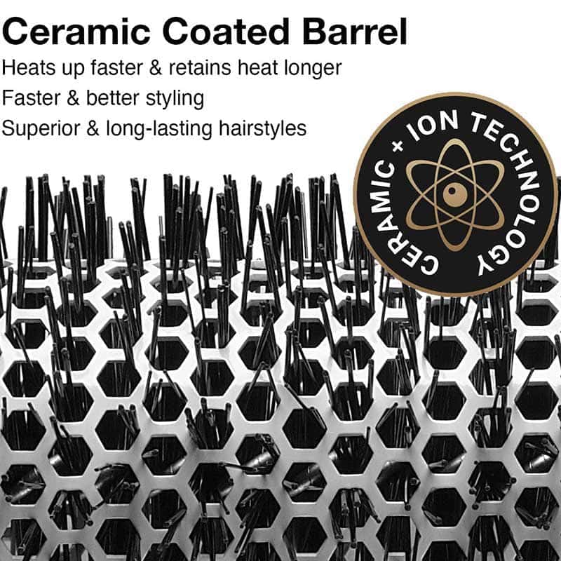 Latest Ceramic TechnologyCeramic coated barrelHeats up faster & retains heat longer![]() Faster & better stylingLarge holes maximize airflowLightweight & comfortable |