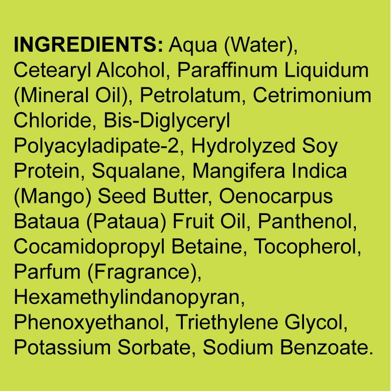 Formulated with Mango Butter, Pataua Oil and Squalane to rehabilitate dry, brittle, sensitive hair. Hair is strengthened and protected from future breakage and tangling. Strands become much more flexible and manageable, helping those with curls to style and define their hair.